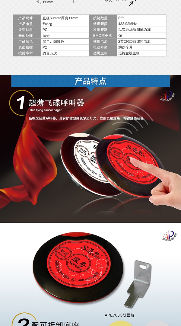 APE700C飞碟超薄呼叫器